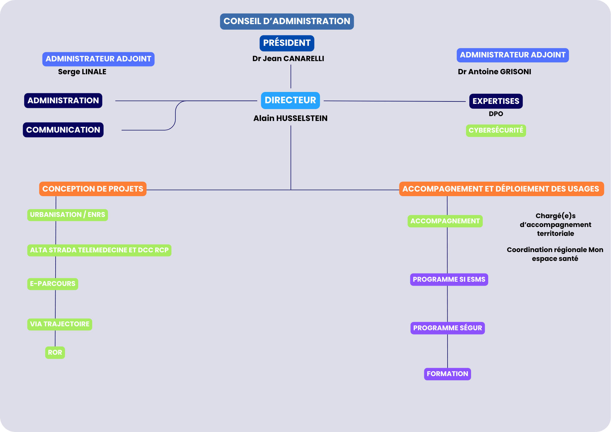 Le GRADeS Corse e-santé est structuré autour d’un siège, basé à Ajaccio et une antenne à Bastia.